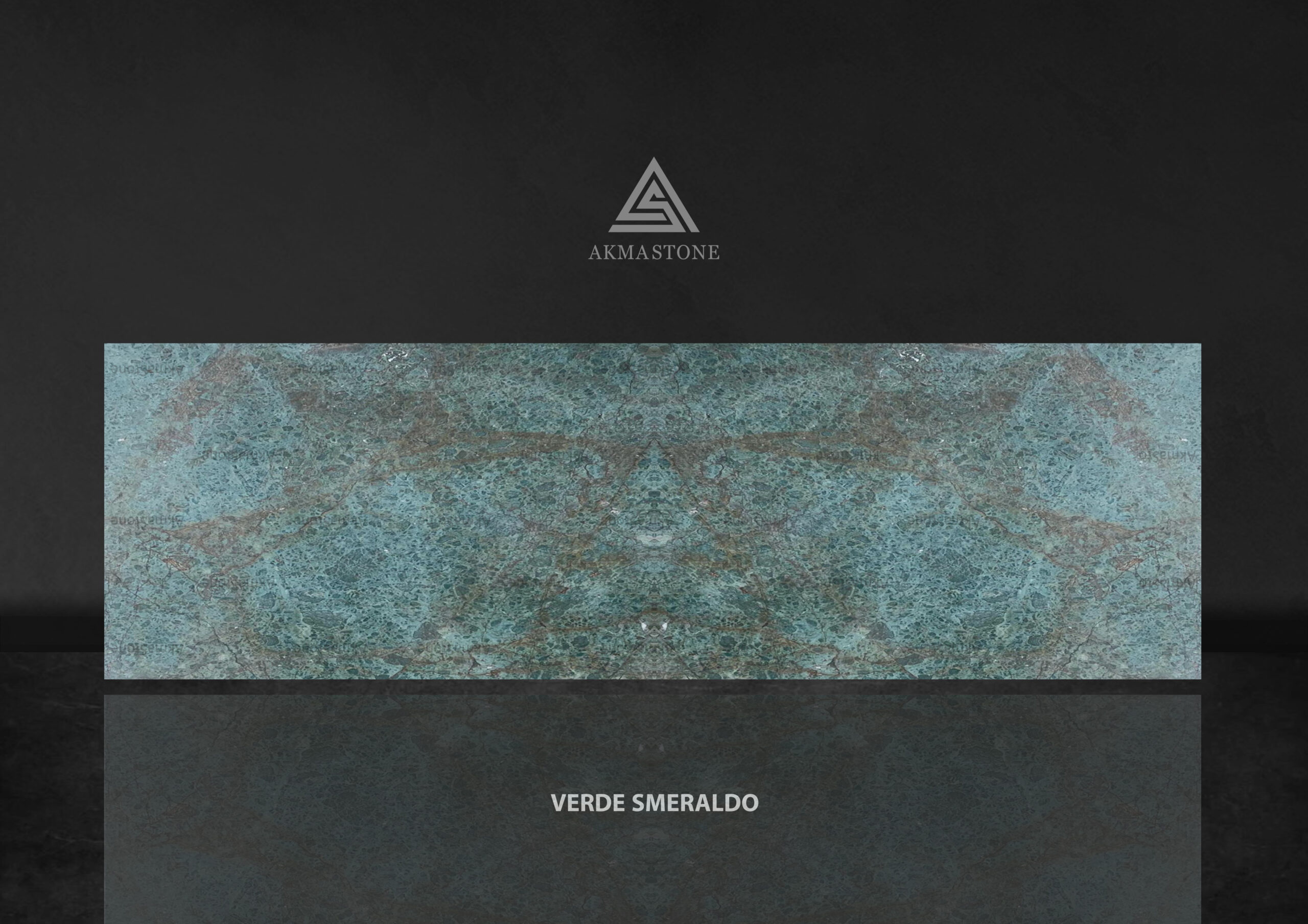Verde Meraldo Marble features deep blue-green hues with intricate veining—ideal for countertops, vanities, walls, floors, tables, and artistic waterjet designs. A rare and luxurious interior stone.
