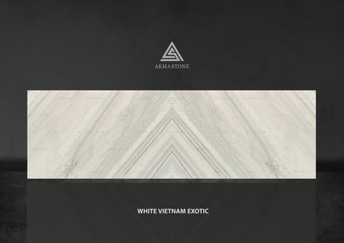 WHITE VIETNAM EXOTIC marble from Acmastone is a premium natural stone distinguished by its luminous white background and unique, exotic veining patterns that combine shades of gray, beige, and subtle gold. This marble adds a dramatic and sophisticated touch to any interior design.