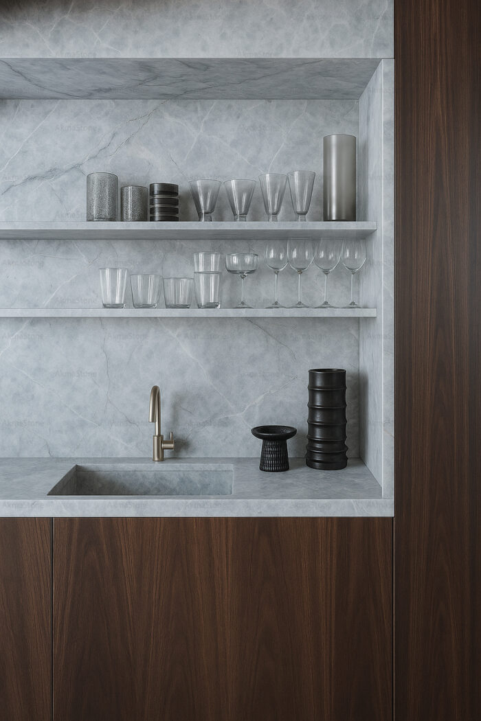 رخام أفيون غري بلونه الرمادي الفاتح وعروقه الناعمة يمنح مساحتك إحساسًا بالرقي والاتساع مع لمسة تركية أصيلة.