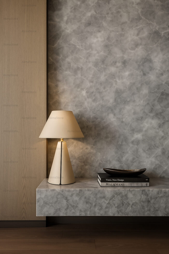 رخام أفيون كلاودي بسطحه الرمادي الناعم وعروقه السحابية يضفي على المساحات لمسة هدوء وفخامة طبيعية ساحرة.