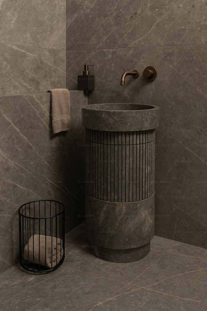 رخام بيترا غري بلونه الرمادي الداكن وعروقه الهادئة يجمع بين الفخامة والاتزان ليمنح المساحات الداخلية طابعًا معماريًا متفردًا.