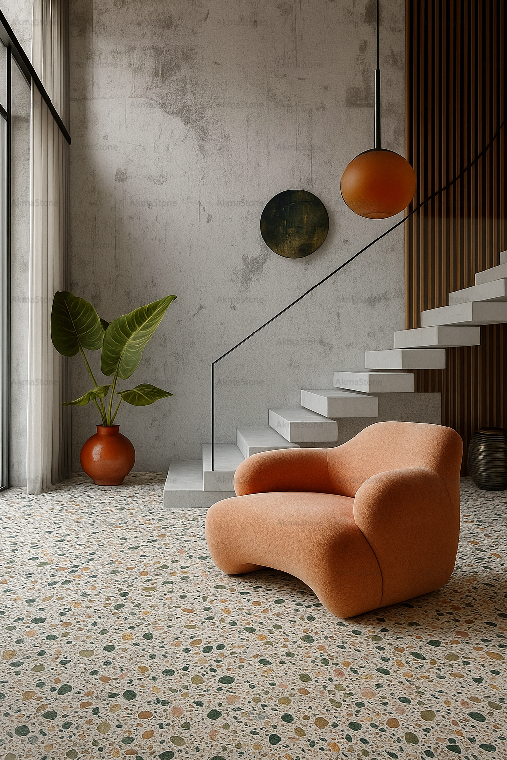 يتميّز تيرازو فينتاج سبرينغ بمتانته وسهولة تنظيفه، ويُستخدم على نطاق واسع في الأرضيات، الجدران، وحتى في قطع الأثاث مثل الطاولات والكاونترات، سواء في البيئات السكنية أو التجارية.