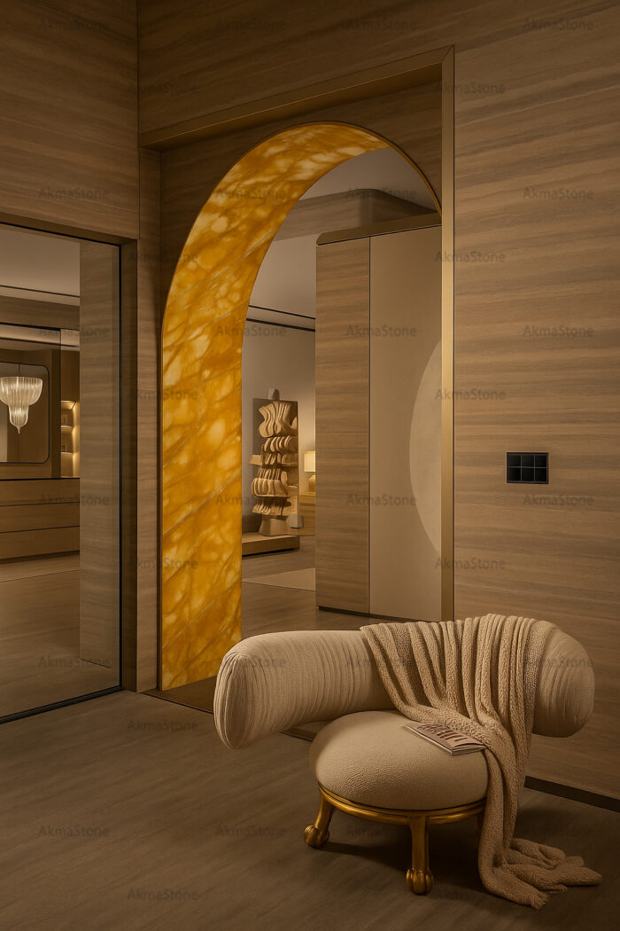 رخام جيالو سينا بلونه الأصفر الدافئ وعروقه الدقيقة، حجر طبيعي فاخر مثالي للأرضيات والجدران والأسطح الداخلية الراقية.