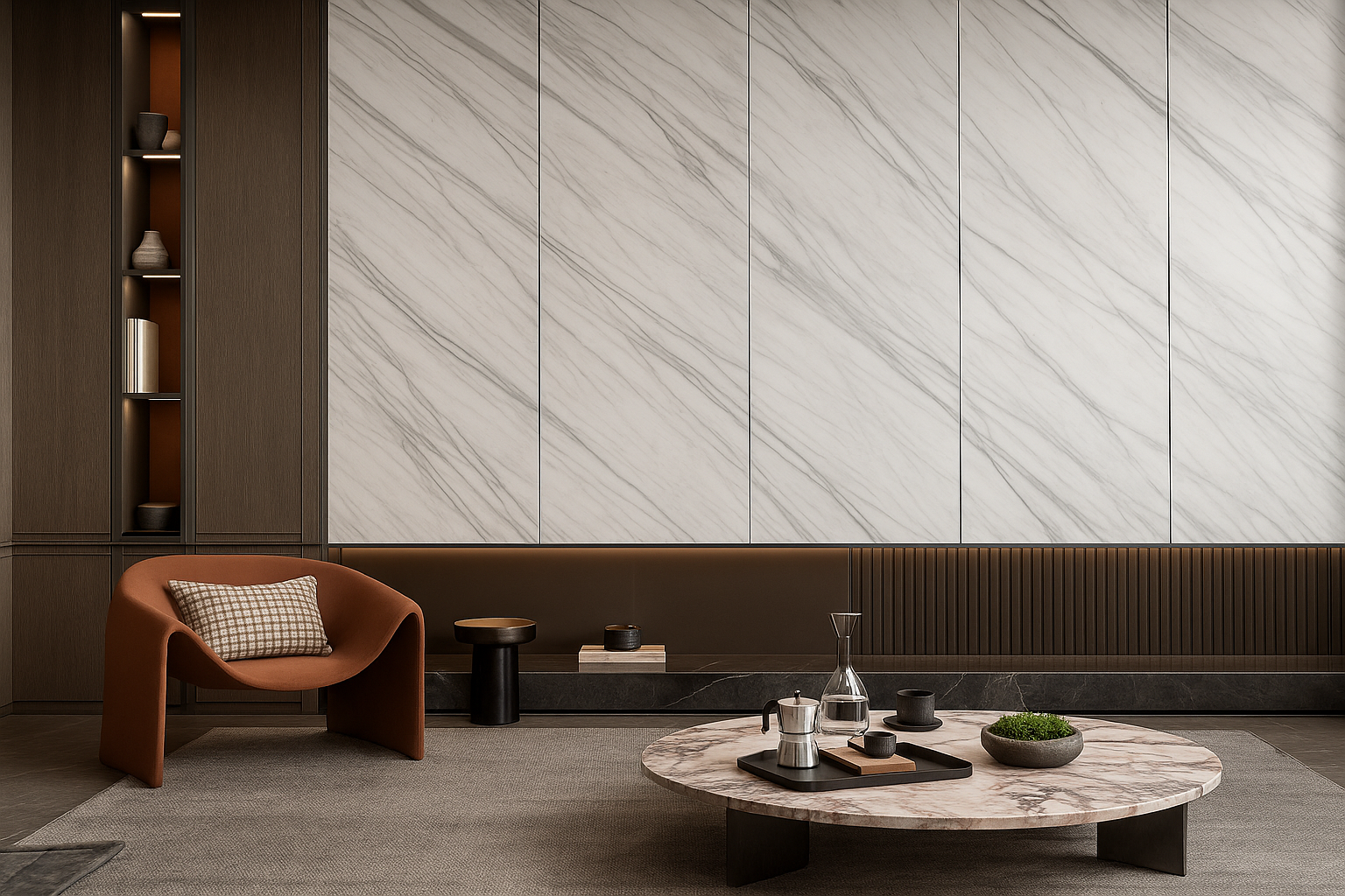 رخام ستتواريتو فيناتو الإيطالي بلونه الأبيض الراقي وعروقه الرمادية الهادئة، يضفي فخامة هادئة وأناقة كلاسيكية على المساحات الداخلية.