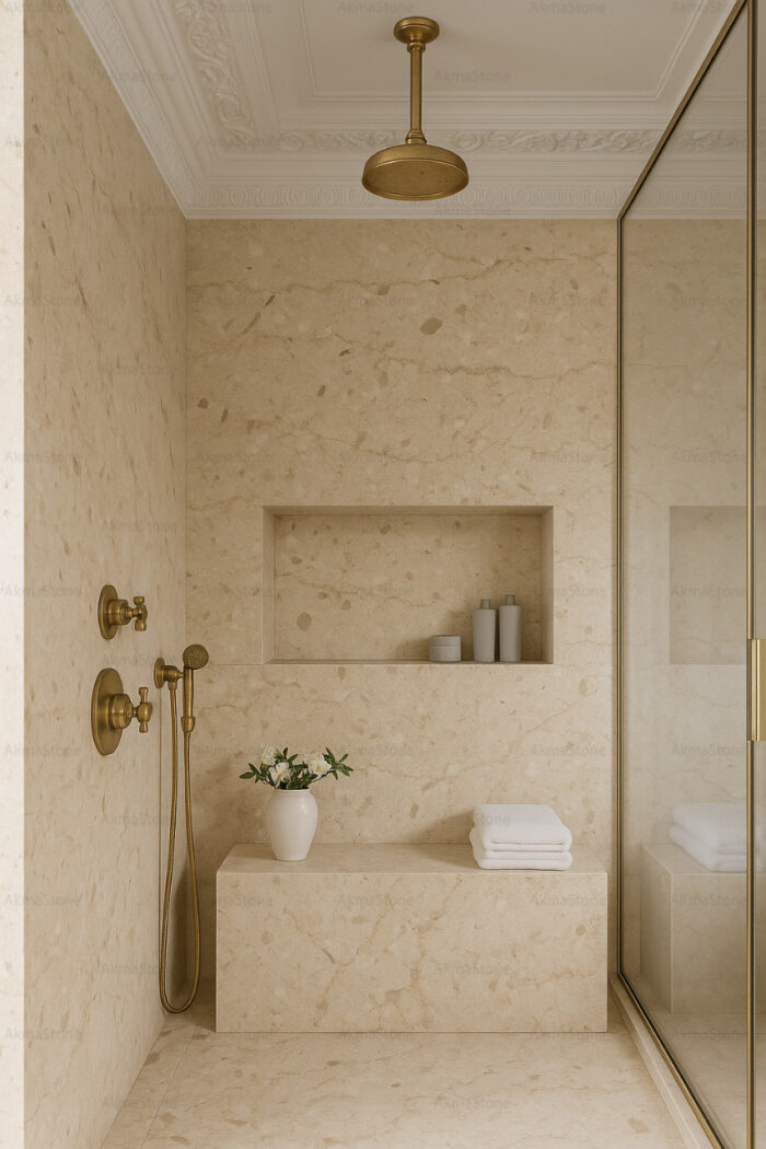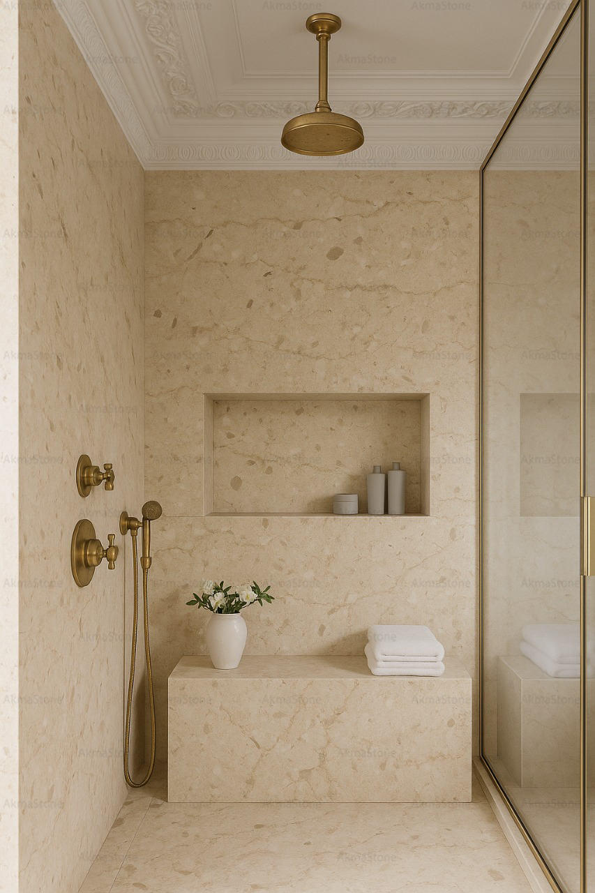 • لون بيج غني مع عروق طبيعية بدرجات دافئة