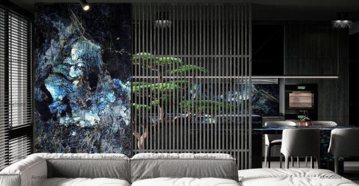 جرانيت ليموريان بلو بلونه الأزرق اللامع وتدرجاته المعدنية الفريدة، حجر طبيعي فاخر يضيف لمسة ساحرة وجريئة لأي مساحة داخلية.